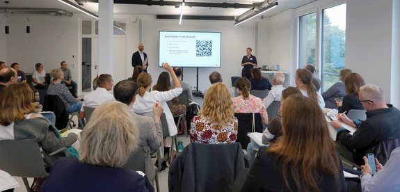 Ende Juli trafen sich rund 50 PH-Mitarbeitende und -Studierende zu einer Zukunftskonferenz in der Creative Hall Assisted Living (CHAL). Gemeinsam arbeiteten sie in zwei Arbeitsphasen an Thementischen zu Zusammenarbeit, Werten, Resilienz und Präsenzhochschule daran, ein zukunftsgerichtetes Selbstverständnis der Hochschule zu entwickeln.