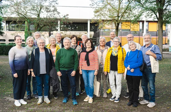 Erstsemester-Treffen des Jahrgangs 1974Zeitgleich zur Ersti-Woche des Wintersemesters traf sich eine Gruppe von ehemaligen Studierenden, die im Jahr 1974 – also vor genau 50 Jahren – ihr Studium an der PH begonnen haben. Mit Unterstützung der Studienberatung gab es eine Campus-Führung, bei der es neben vielen Erinnerungen auch viel Neues zu entdecken gab. Rektor Sabla-Dimitrov nutzte die Gelegenheit, um die Gruppe herzlich zu den Feierlichkeiten im kommenden Jahr anlässlich des Jubiläums zu 200 Jahren Lehrkräftebildung in Schwäbisch Gmünd einzuladen. |