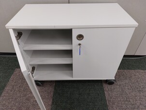 Im fahrbaren Arbeitsplatzwagen können Sie Ihre Lernmaterialien einschließen.