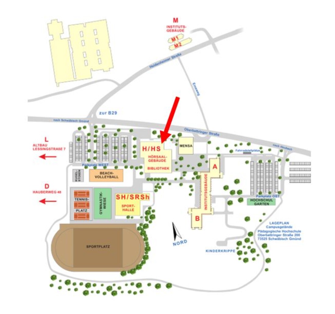 Vom Hauptbahnhof und vom Marktplatz Schwäbisch Gmünd fährt die Buslinie 1 (Richtung Heubach und Oberbettringen/Nordwest) direkt vor die Haustür (Haltestelle PH / Berufsschulzentrum bzw. BSZ / PH Heidenheimer Str.). Die Fahrzeit beträgt ca. 10 Minuten.
