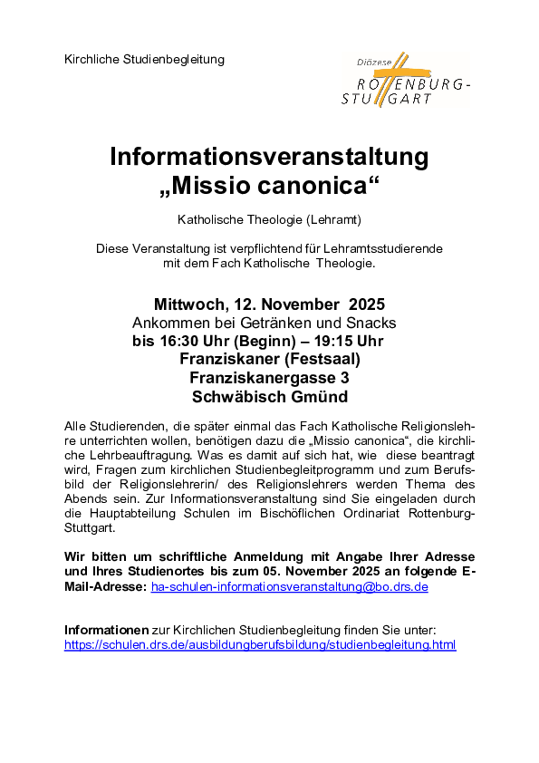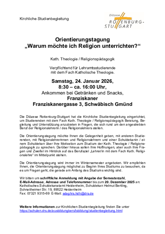 Studienbegleitung des Bistums Rottenburg Stuttgart