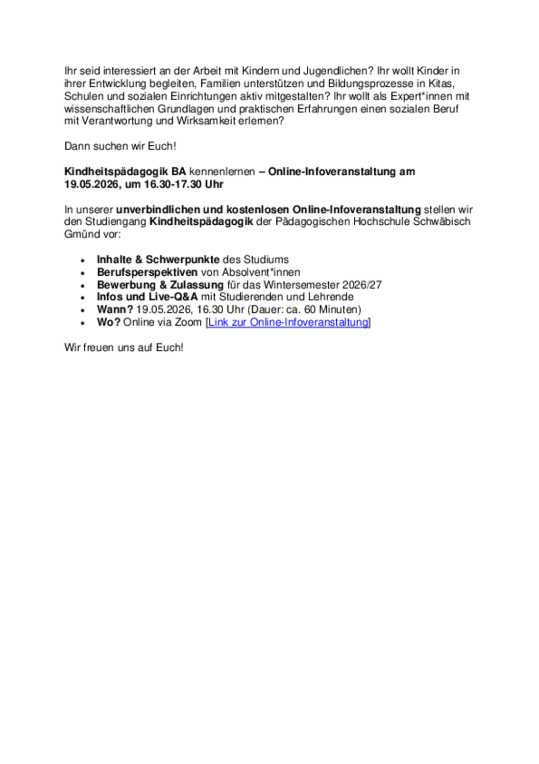 Herzliche Einladung zu unserer Info-Veranstaltung online