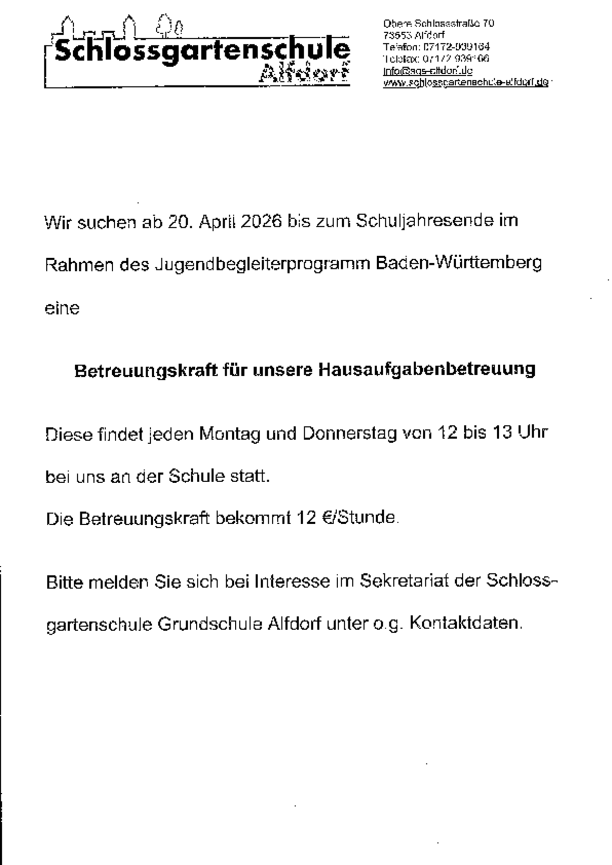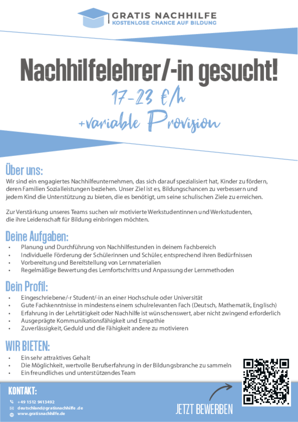 Bitte meldet euch bei uns, falls Jobs bereits vergeben sind, dann nehmen wir die Anzeigen raus. Vielen Dank für eure Unterstützung!