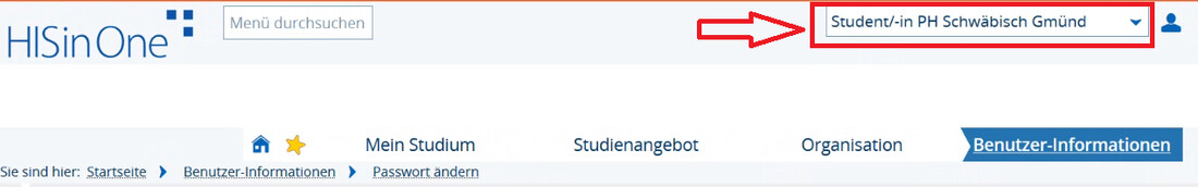 Als Doktorand*in haben Sie zwei Rollen. Für die Rückmeldung ist es erforderlich, dass Sie die Rolle "Student/in PH Schwäbisch Gmünd" einstellen.